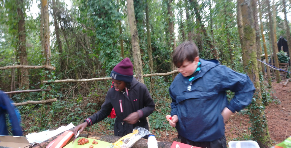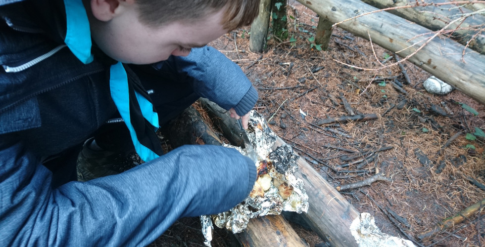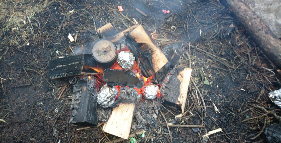 Ross had to head, like I said he had a lot on yesterday, and our PL's and APl's with their patrols took a corner each and started lighting fires. All I can say is despite the fact that everything was just damp they didn't give up. Charlie kept going and got his fire started. Thank you for bringing extra bits of wood too btw, they came in handy! Sarah and Griffin got some chunks of chicken, stock cube and a bit of oil and wrapped it in silver foil and when they had hot embers placed their parcels on Charlie's fire.