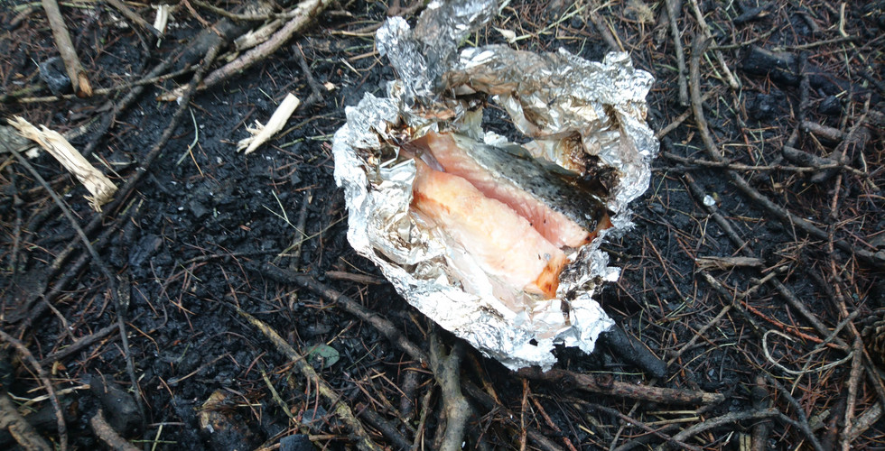 Salmon - what can i say! We brought fish as I said earlier. I naively thought that only the three scouters would actually eat the fish. Yes the kids would happily cook it but would they eat it! How wrong was I. Catherine and Alex D had checked the salmon earlier as it was cooking on the embers. It wasn't quite ready. It didn't take too long however and off the fire it came. OH MY GOODNESS, it was absolutely delicious. Alex D had seasoned one salmon parcel with garlic, the other with peri peri. Collectively we attacked that salmon, EVERYONE loved it and as Daragh said history was made for some of us that day for actually eating salmon!!! Alex D did a great job of fending us of so that he very cleverly made salmon and pepper (that's what he had prepped earlier) kebabs for Sophia and Ruth! Really fantastic stuff!