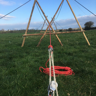 Our scouts have been working on their Pioneering skills at our weekly meetings since our return after Christmas. We started off with the basic knots - reef, bowline, figure 8, and clove hitch. Our experienced scouts got to teach our new scouts so that they learned from their peers and had a bit more fun. We quickly progressed on to square lashings, then diagonal lashings and timber hitches. Week 4 was tripods and week 5 was round lashings. We put it all together to make miniature hour glass towers at our meeting last week. However, the real test was on Sunday when the scouts would put their skills to the test in building something they had never seen previously using skills that our group had never used before. They were going to use anchor systems with tourniquet knots as well as mechanical advantage pully systems to tighten ropes and build a bridge.